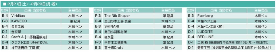 木軸ペン以外の方達のイベント情報はこちらに回ってきていないので、スタンプの方たち作家さんがすべてイベント期間中に現地にいらっしゃるのかわかりません。